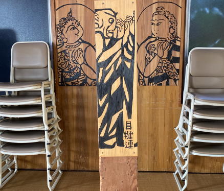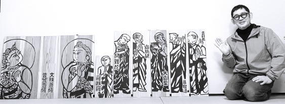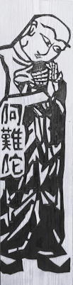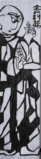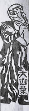 棟方志功をご存知でしょうか。青森出身の世界的な版画家です。住職は長年、大ファンを自称しているのですが、それが高じて、棟方の代表作『釈迦十大弟子』(十人のお弟子と、文殊菩薩・普賢菩薩を描いた十二枚の大作!)を模して、杉板に彫ってしまいました。稚拙な出来なので、棟方に失礼になるかもしれませんが、そこは素人の趣味レベルということでご容赦いただいて。